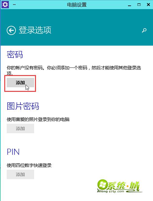 4、在登录选项界面下,点击“添加”进入下一步操作;