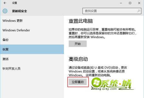 3、选择左侧“恢复”选项,点击高级启动下方的“立即重启”;