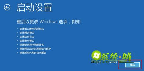 7、在启动设置界面,直接点击右下角的“重启”;