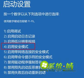8、重启再次弹出启动设置界面,使用数字4或F4即可进入安全模式;