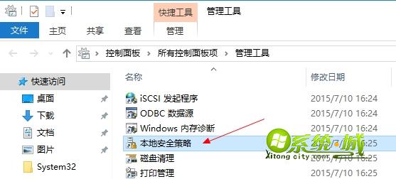 2、点击管理工具进入找到“本地安全策略”,双击打开;