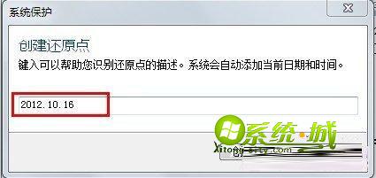 4、系统保护会要求你键入你所要设定的还原点日期,输入之后再次单击“创建”,系统便会开始自动创建还原点;