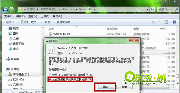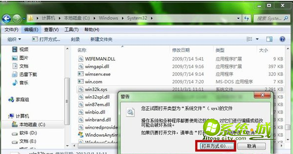 步骤一、在电脑路径C:\WINDOWS\system32目录,找到win32k.sys系统文件;