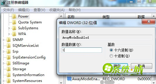 HKEY_LOCAL_MACHINE/SYSTEM/CurrentControlSet/Control/SessionManager/Power,然后在右侧窗口空白处单击鼠标右键,新建一个“DWORD32位”的值,并命名为“AwayModeEnabled”,双击给该键值,并赋值为“1”(16进制)。修改完毕后,退出注册表编辑器即可。