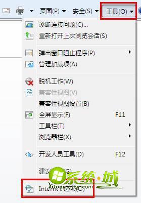 推荐:深度技术win7系统下载1、打开浏览器点击“工具”,选择“internet选项”;