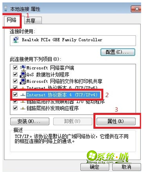 4、在打开本地连接属性网络栏中,选中“ Internet 协议版本4 ”,点击下边的属性;