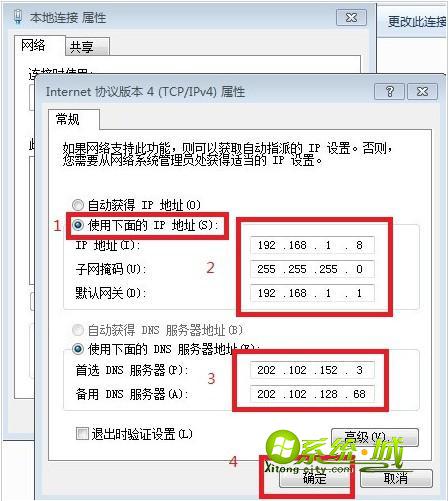 IP地址则填写为:192.168.1. X (X的数字可以是2到255之间的任意数字)