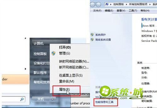 2、打开属性窗口进行设置。窗口看到“性能信息和工具”点击进入;