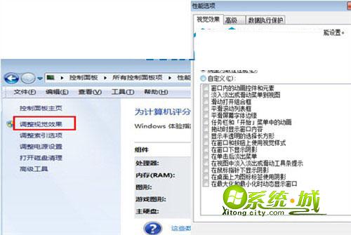 3、新窗口中打开“调整视觉效果”项,此时就可以看到视觉效果调整窗口。
