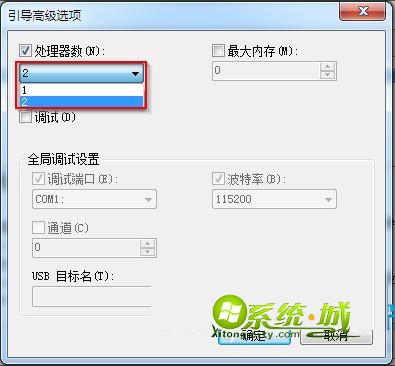 3、在对话框中勾选处理器数,在下拉菜单里选择处理器的数目,我们需要选择处理器2核,并勾选最大内存选项,然后点击确定返回,重启计算机即可。
