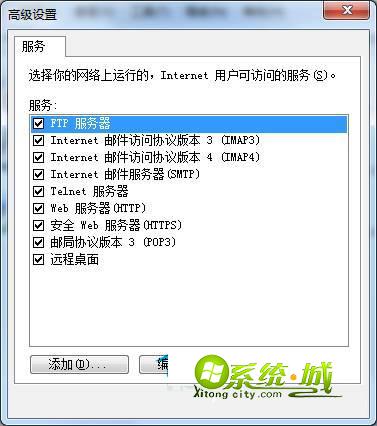 4、然后弹出来的高级设置界面中,并勾选所有服务后点击确定;