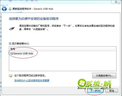 5、在列表框中,选中所需安装的驱动程序,点击下一步;