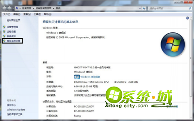 4、右击计算机-属性(如没有计算机选项,可以让用户在左下角开始-计算机-属性也可),选择左上方的高级系统设置。如下图