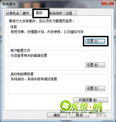 选择“高级”,再选择性能栏里的“设置”,如下图,