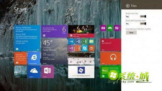 9、看到更多瓷砖,为了照顾8英寸等小尺寸平板电脑,Windows 8.1默认显示较少的主屏瓷砖,你可以在charm设置菜单中,选择瓷砖项目,选择最小的尺寸,尽可能在一屏下显示更多的内容。