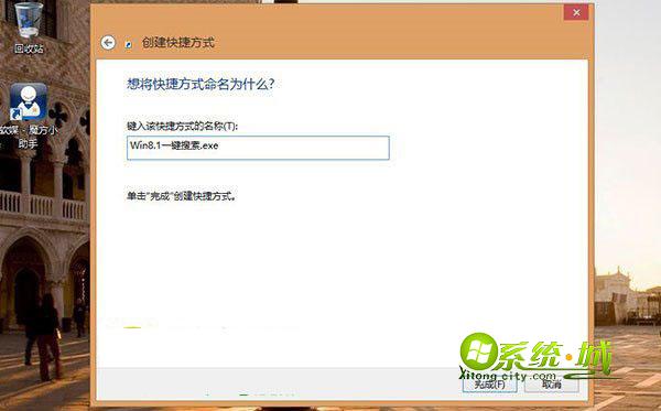 3、点击下一步,快捷方式可以命名为“win8.1一键搜索”;