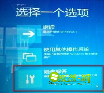 1、开机连续F8选择安全模式之后选择修复您的计算机,选择疑难解答;