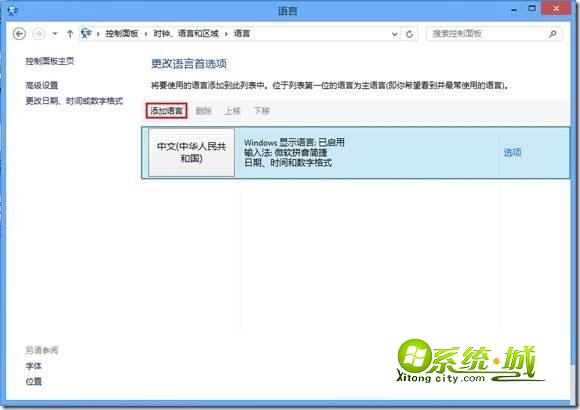 1、在控制面板——时钟、区域和语言——语言下面点击“添加语言”;