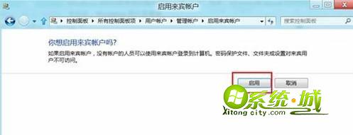 5、进入“来宾账户”后点击“启用”,即开启了“来宾账户”;