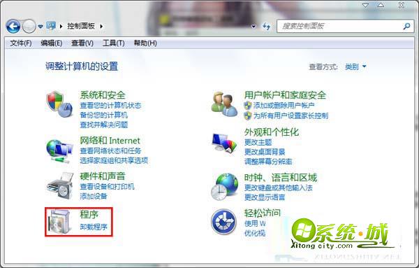 1、打开控制面板,然后点击程序按钮;