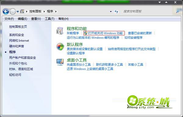2、点击“打开或关闭Windows功能”;