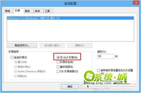 3、切换到引导选项卡,勾选无GUI引导,确定保存。