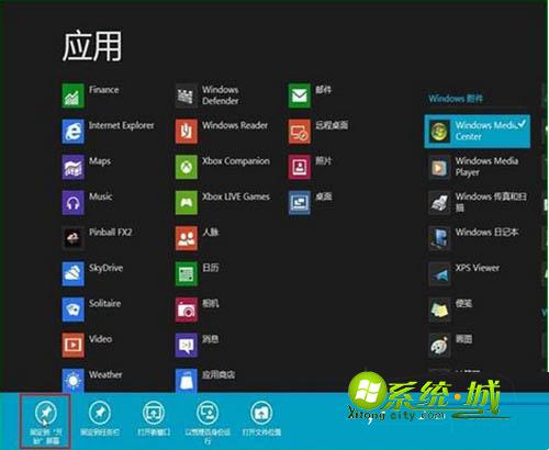 1、在开始的 Metro 界面右击鼠标,出现应用的图标;