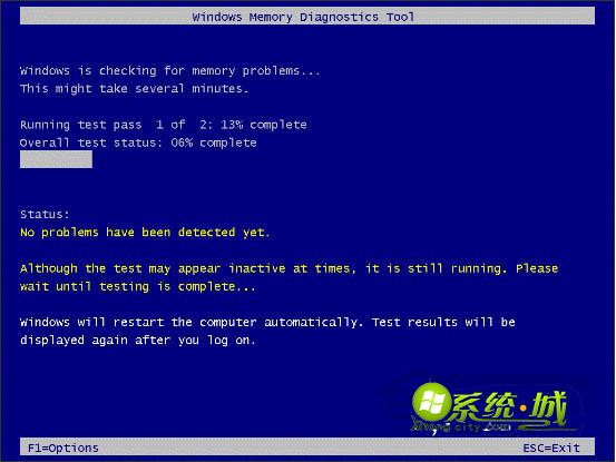 1、点击:立即重新启动并检查问题。所有的操作都是自动的,此后计算机会重启,登录到如下界面;