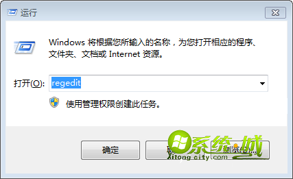1、点击“开始——运行”,在打开的运行窗口中,输入“regedit”命令后按回车,打开注册表编辑器;