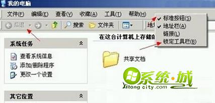 1、打开我的电脑或者任意文件夹,在菜单栏空白位置点击鼠标右键;