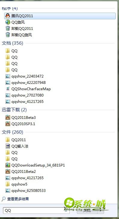 使用的方法步骤:首先,要启动开始菜单,在搜索框中键入要搜索的关键词(例如QQ)后,系统便会自动开始搜索,并且搜索结果会即时填充搜索框上面的开始菜单空间。