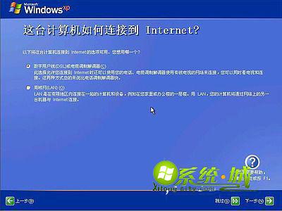 点击右下角的“下一步”按钮,出现设置上网连接画面。