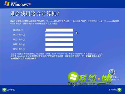 安装程序自动为你创建又长又难看的计算机名称,自己可任意更改,输入两次系统管理员密码,请记住这个密码,Administrator系统管理员在系统中具有最高权限,平时登陆系统不需要这个帐号。接着点“下一步”出现如下图。
