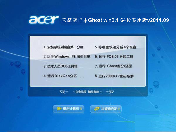 宏基(Acer)笔记本Ghost win8.1 64位专用版v2014.09